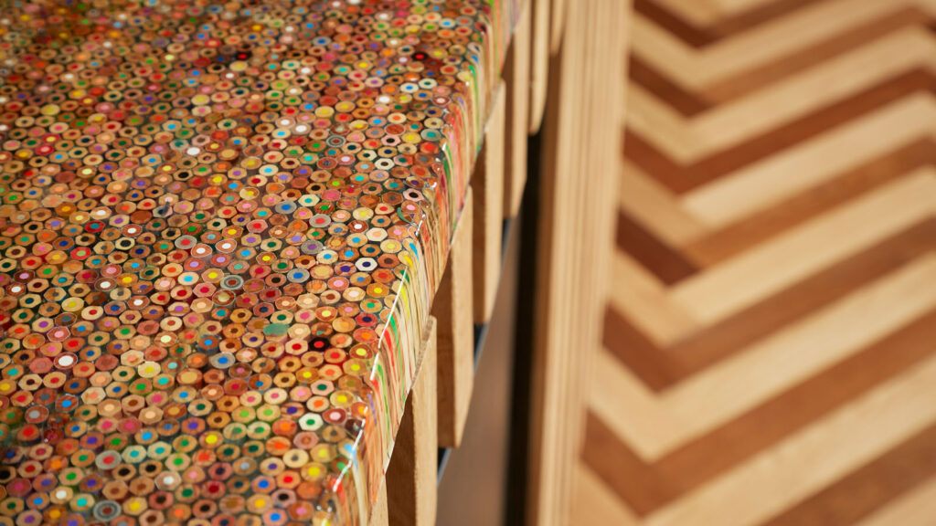 “Inside there are intriguing design elements at every turn. Using repurposed and sustainable elements was of the utmost importance to Ruth and Guy, so each area was lovingly hand-built using a mixture of new FSC wood and reclaimed oak and larch.