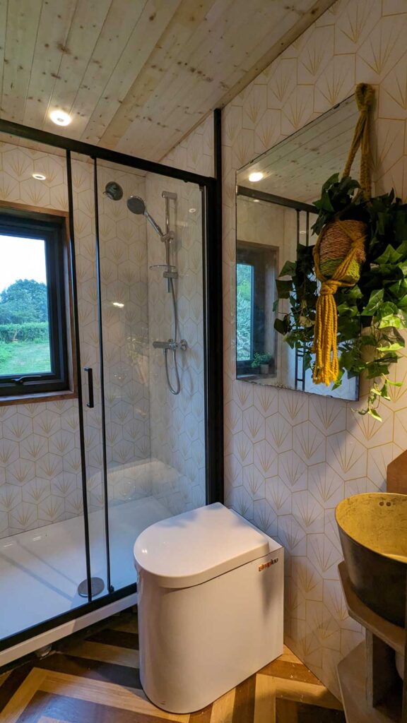 Our focus on design, particularly using sustainable and innovative product partners such as Havwoods and Showerwall really elevates the log cabin’s interior. Read about our design journey here.